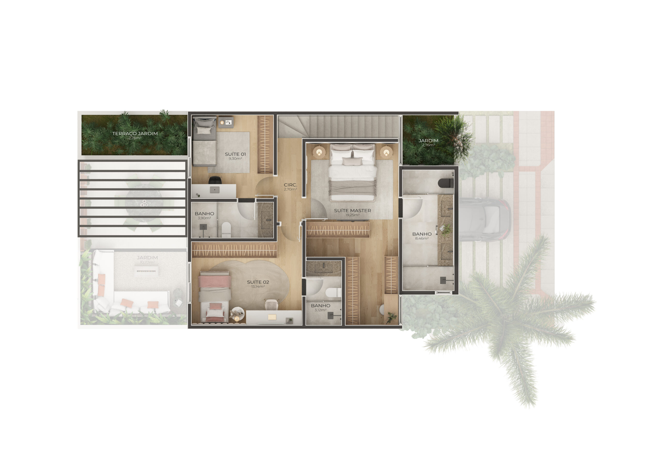 🌳 Conforto: Casas espaçosas com 4 suítes, áreas de lazer completas e um ambiente projetado para o seu bem-estar.